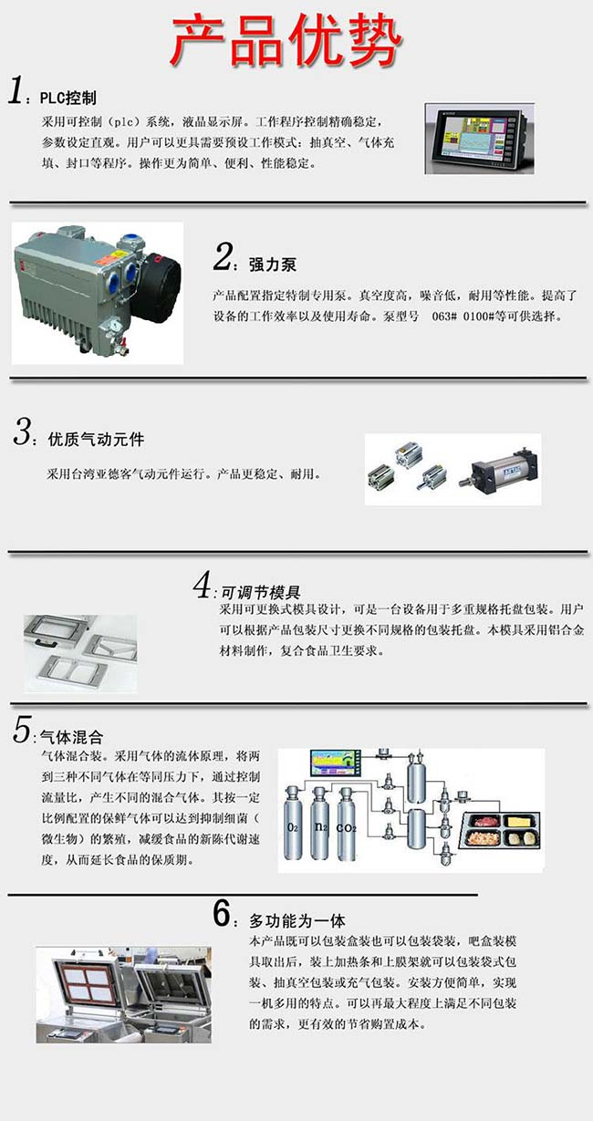 1.    本公司針對連鎖店、超市、專賣店、實驗室、小型食品生產企業等推出的一款突破性設計真理氣調保鮮包裝機。